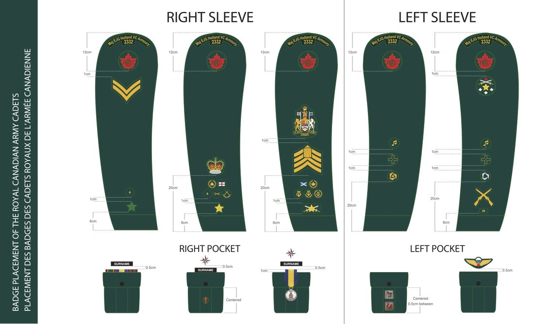 *Please note the video is based on an air cadet uniform, please refer to the photo below for proper army cadet badge placement. However this video is a great example on how to sew on your badge.
